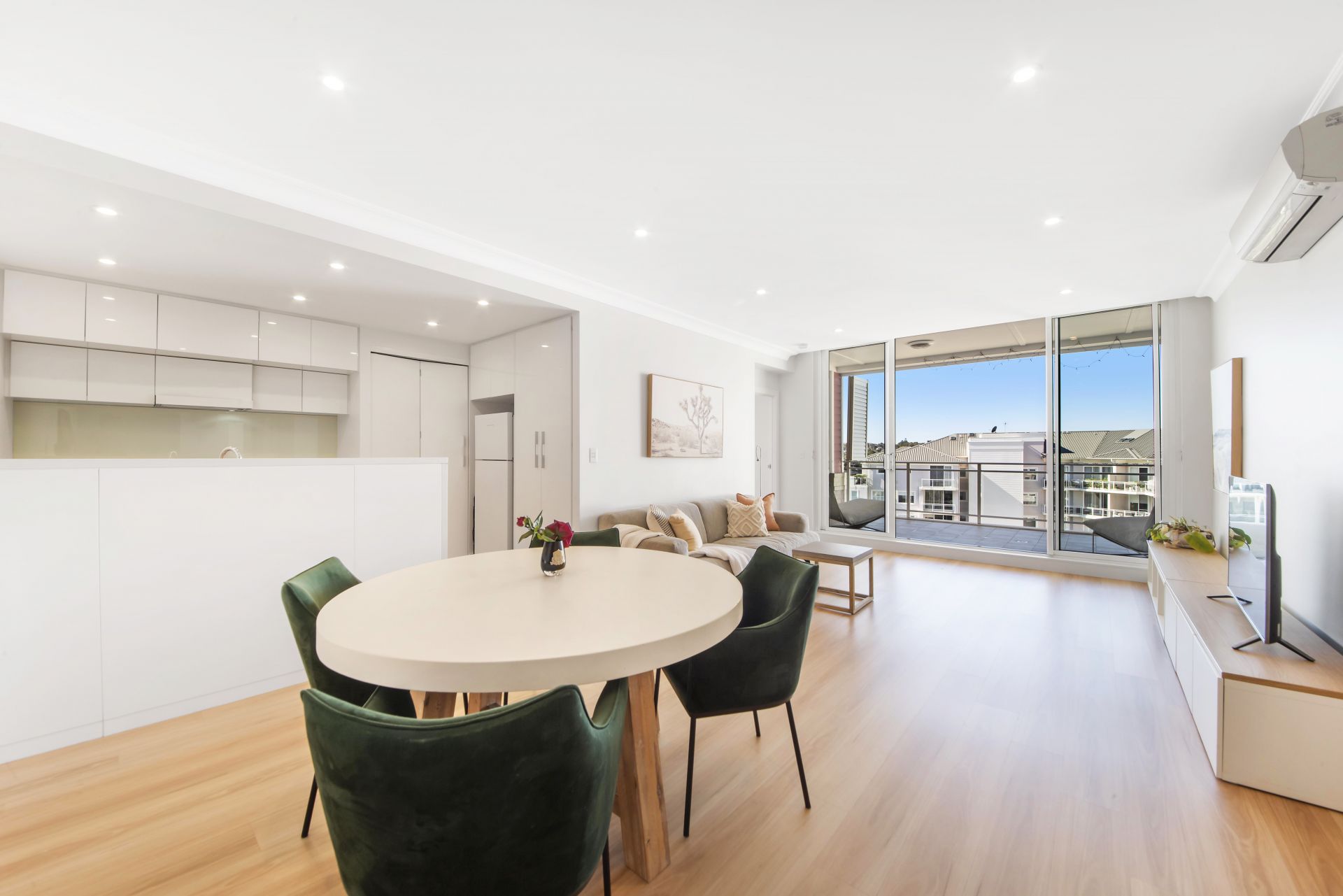 -Light-filled interiors, living opens to a sheltered balcony