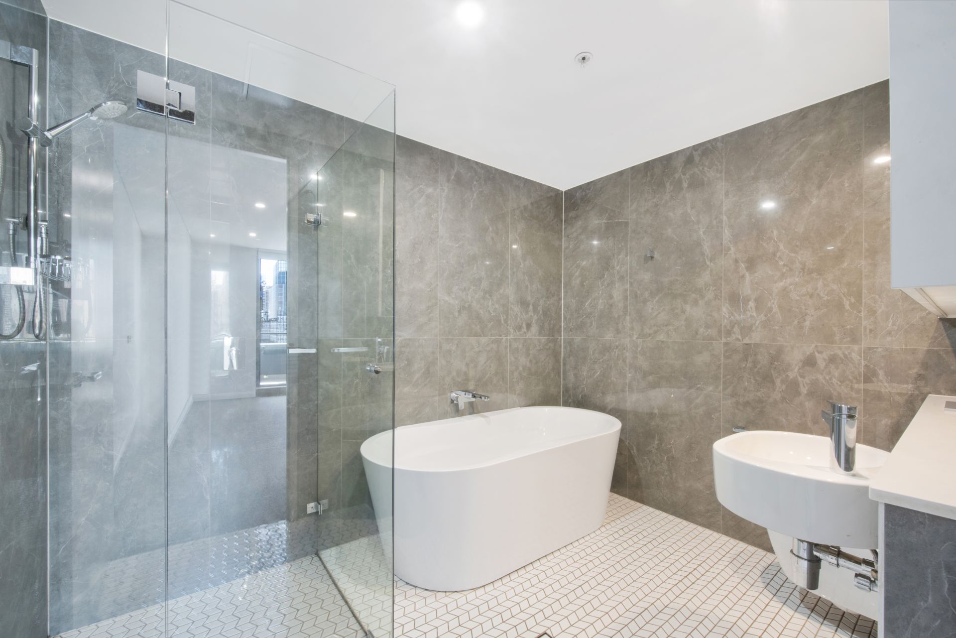 - Large format 600x600mm tiles deliver low maintenance style throughout the open-plan living, bathroom and kitchen area